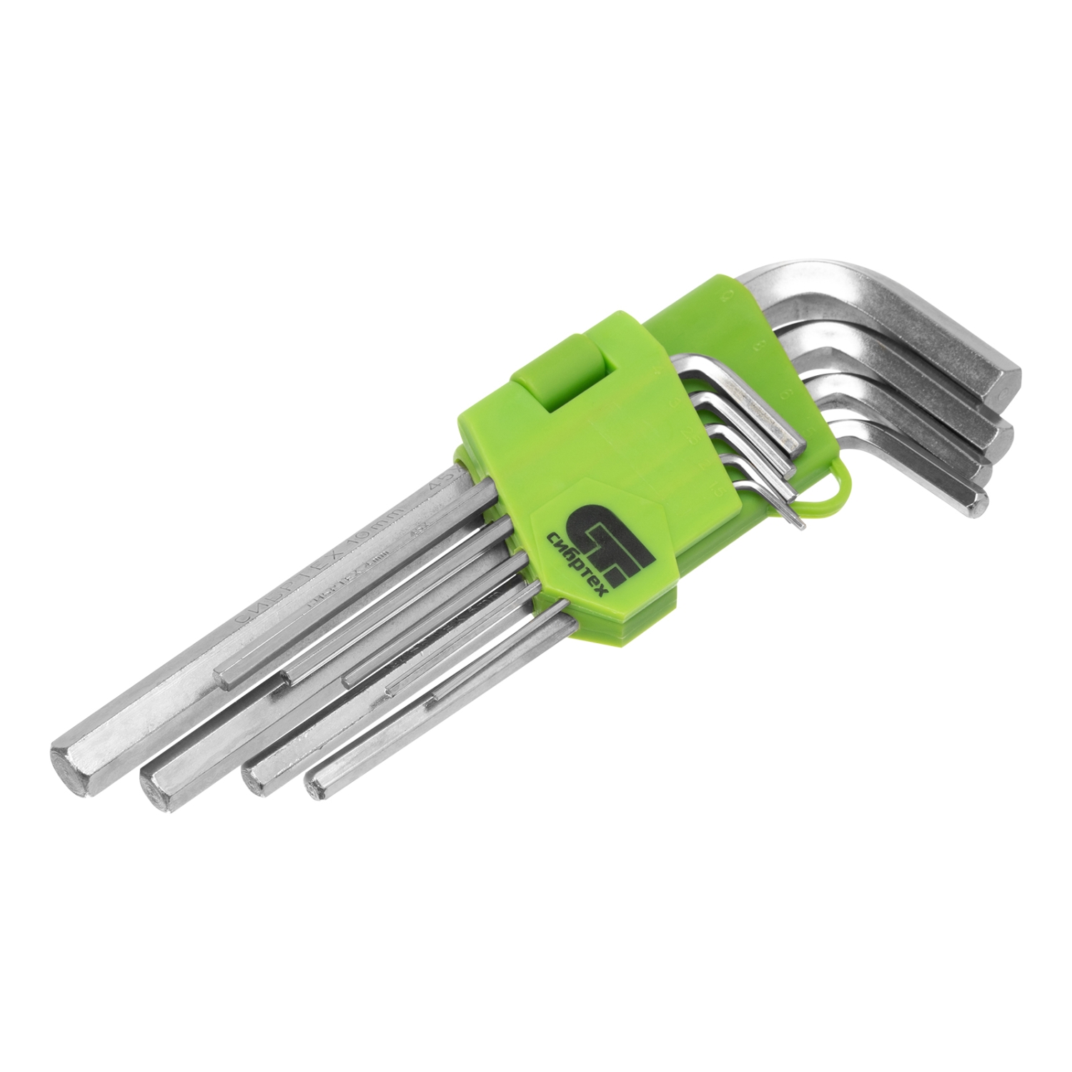 Набор удлиненных имбусовых ключей Сибртех 12318 из закаленной стали 45Х, покрытых никелем, 9 шт. в упаковке, используется для работы с евровинтами, имеющими шлиц HEX в виде внутреннего шестигранника. В комплекте 9 ключей размером от 1,5 до 10 мм, что обеспечивает широкие возможности применения набора. Он пригодится при сборке мебели, для ремонта велосипедов, установки и регулировки пластиковых окон. Прочность — ключи изготовлены из высококачественной закаленной стали 45Х.