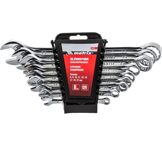 Набор ключей комбинированных 6-22 мм 9 шт CrV, полированный хром Matrix