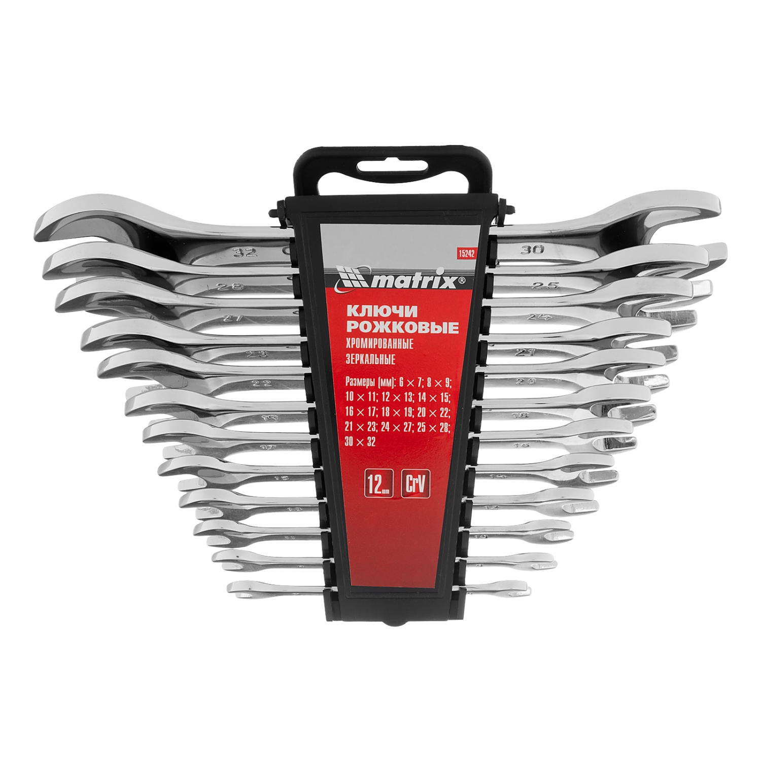 Набор ключей рожковых 6-32 мм 12 шт CrV Elliptical зеркальное хромирование Matrix