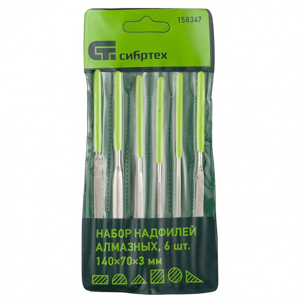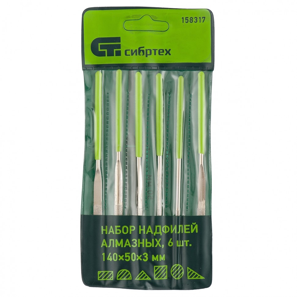 Набор надфилей алмазных 140х50х3 мм 6шт. Сибртех 158317 1 шт.