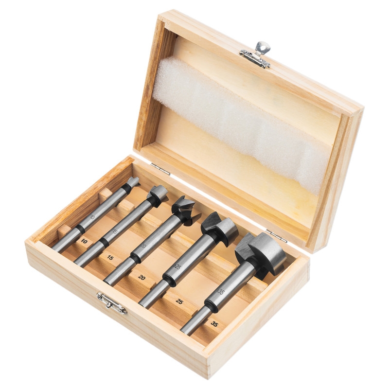 Набор сверл Форстнера по дереву,цилиндр.хвост,дерев.бокс 5 шт (10-15-20-25-35 мм) Sparta