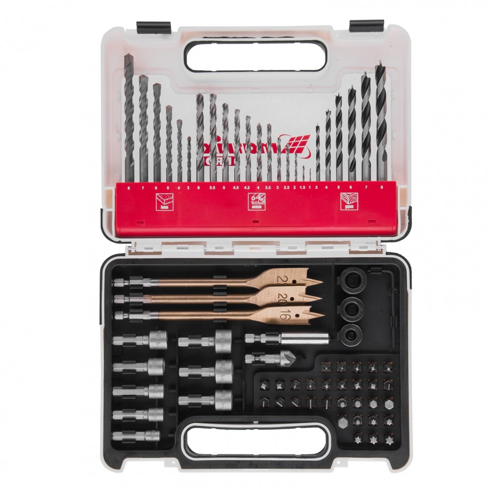 Набор сверл комбинир.. мет.1-6мм.бетон 3-8мм.дер3-8мм..перки.биты 30шт..адап..голов.8шт..71пр.Matrix