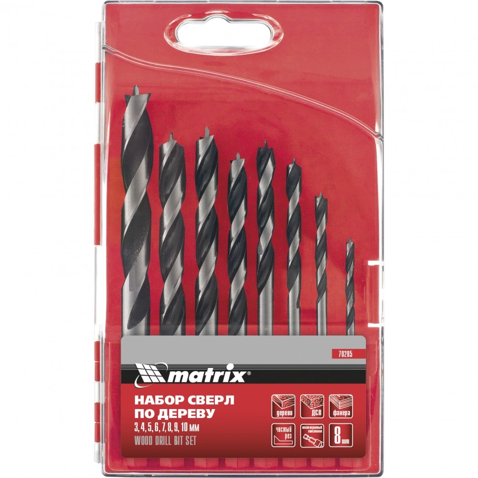 Набор сверл по дереву,6-гран. хвостовик,пластик. бокс 8 шт (3-4-5-6-7-8-9-10 мм ) Matrix
