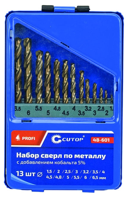 Набор сверл по металлу Cutop Profi с кобальтом 5%, в мет.кор. 2-8мм (через 0,5мм),13шт.