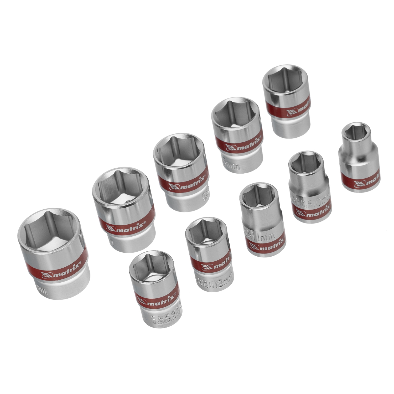 Набор торцевых головок 10 шт 3/8, 6-ти гран., 8-19мм,CrV, Matrix
