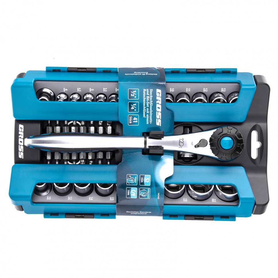 Набор торцевых головок, трещотка 120 зубьев, 41 предм. 1/2, 1/4 CrV Gross