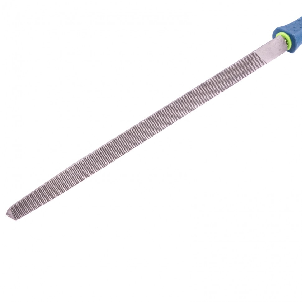 Трехгранный напильник Сибртех 16031, длина рабочей части 300 мм, с насечкой №2 и двухкомпонентной рукояткой, используется для ручной доводки металлических деталей, придания им нужной формы и размера. Оптимален для обработки треугольных отверстий, граней, пазов, внутренних углов. Насечка №2 с 13-25 зубьями на 1 см длины обеспечивает точную шлифовку после применения драчевого напильника. Инструмент будет полезен мастерам и любителям слесарного дела. Преимущества Долговечность — напильник изготовлен из высокоуглеродистой стали У13А, характеризующейся прочностью и устойчивостью к нагрузкам. Высокое качество опиловки — на полотно нанесена перекрестная насечка, в которой вспомогательные мелкие зубцы обеспечивают шлифовку материала. Комфорт во время работы — эргономичная двухкомпонентная рукоятка удобно лежит в руке и не выскальзывает из ладони. Удобное хранение — в тыльной части рукоятки имеется отверстие для подвешивания.