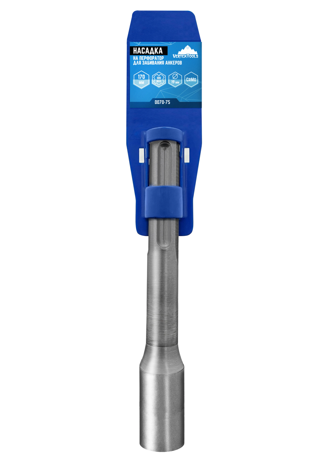 Эффективная установка клиновых анкеров с насадкой на перфоратор для забивания анкеров VertexTools длиной 170 мм и системой SDS-MAX вы сможете установить клиновые анкеры до размера М18 с легкостью и надежностью. Эта насадка предназначена для обеспечения безупречного монтажа анкеров, при этом не повреждая их головку и предотвращая их выскальзывание в процессе установки.Оптимизированный монтаж для серийной работыЕсли вам нужно провести серийный монтаж анкеров, то наша насадка VertexTools - ваш незаменимый инструмент. Её внутренний диаметр составляет 19 мм, что идеально подходит для монтажа клиновых анкеров. Вы сэкономите время и силы, используя эту насадку, и сможете доверять её надежности на каждом этапе работы.Профессиональное качество из Cr-Mo сталиНасадка на перфоратор VertexTools изготовлена из высококачественной стали Cr-Mo, что обеспечивает ей долгий срок службы и надежность в самых требовательных условиях. Вы можете полагаться на этот инструмент, зная, что он не подведет вас.