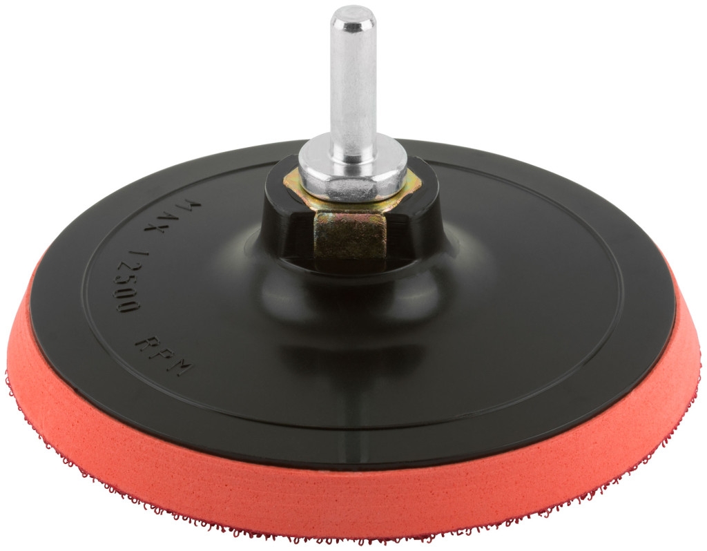 Насадка c липучкой предназначена для УШМ и дрелей. Применяется для проведения шлифовальных работ совместно с абразивными кругами на ворсовой основе. Преимущество насадки в наличии мягкой полиуретановой прокладки, которая позволяет качественно обрабатывать сложные неровные поверхности. В комплекте поставляется переходник с резьбы М14 на цилиндрический хвостовик.