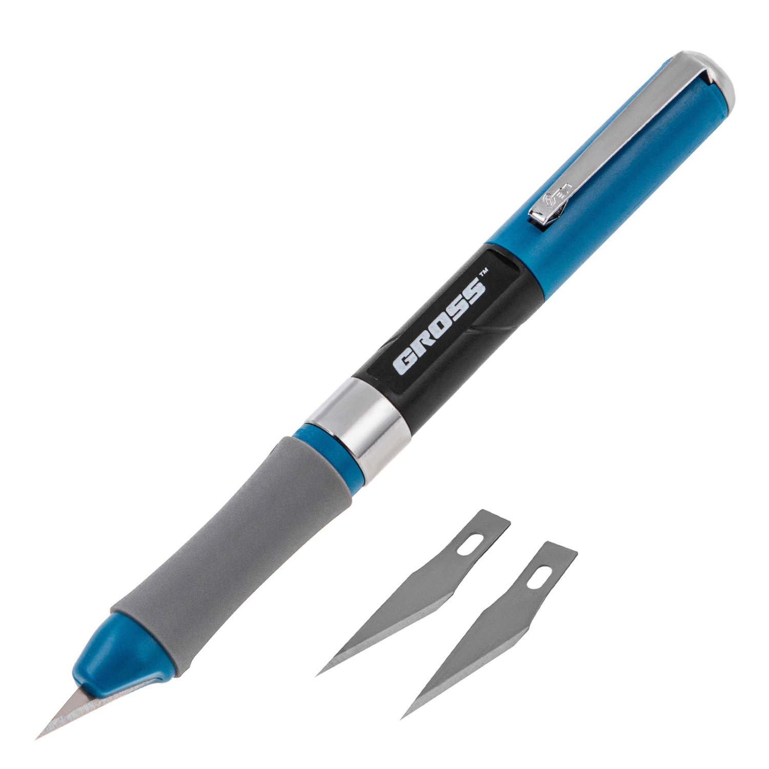 Нож для дизайна 150 мм, выдв.перов.лезвие, мет.клипса д/фиксации, двухкомп.рук. Gross