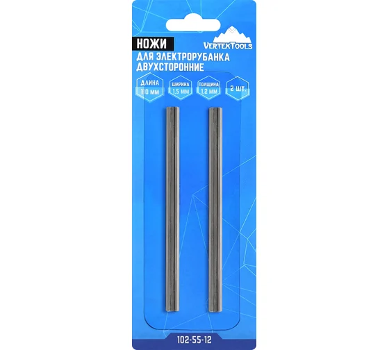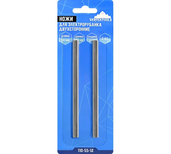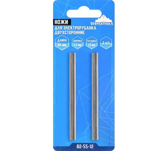 Ножи двухсторонние для электрорубанка изготовлены из легированной быстрорежущей стали Mn65. Предназначены для работ по мягкой и твердой древесине.