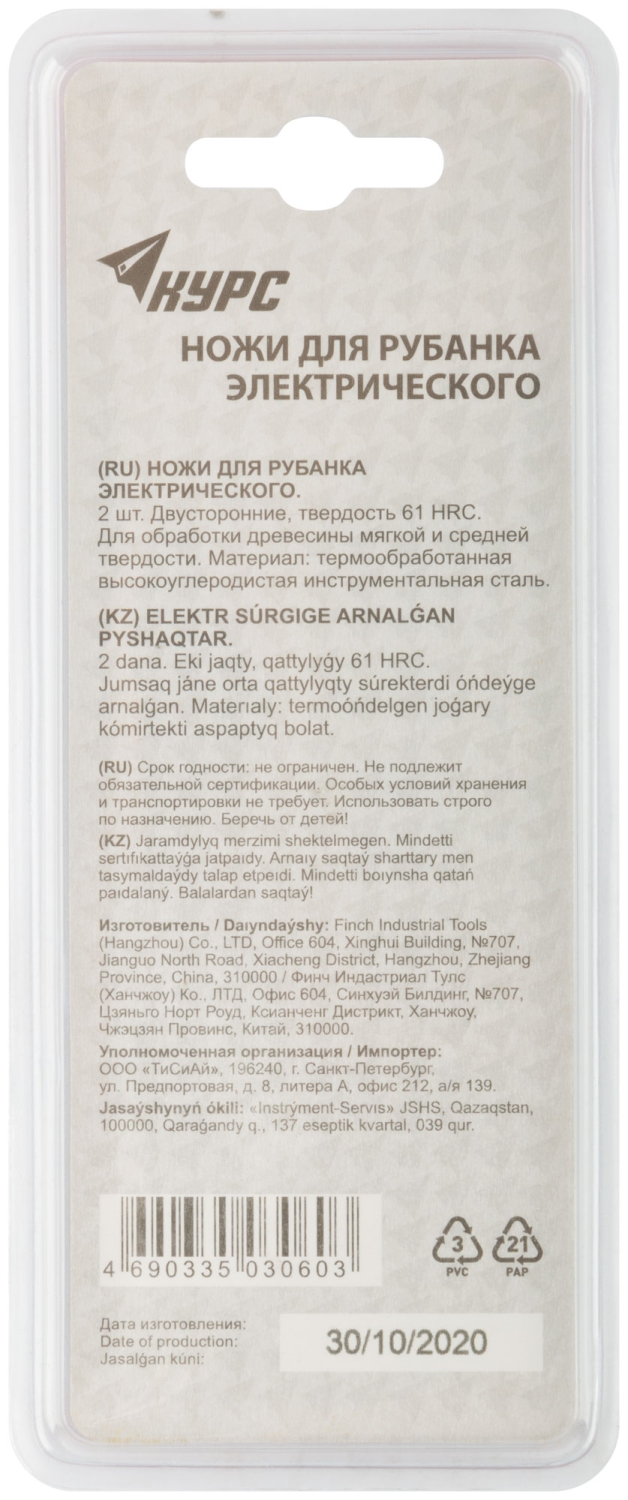 2 шт. Двусторонние. Для обработки древесины мягкой и средней твердости. Материал: высокоуглеродистая сталь.