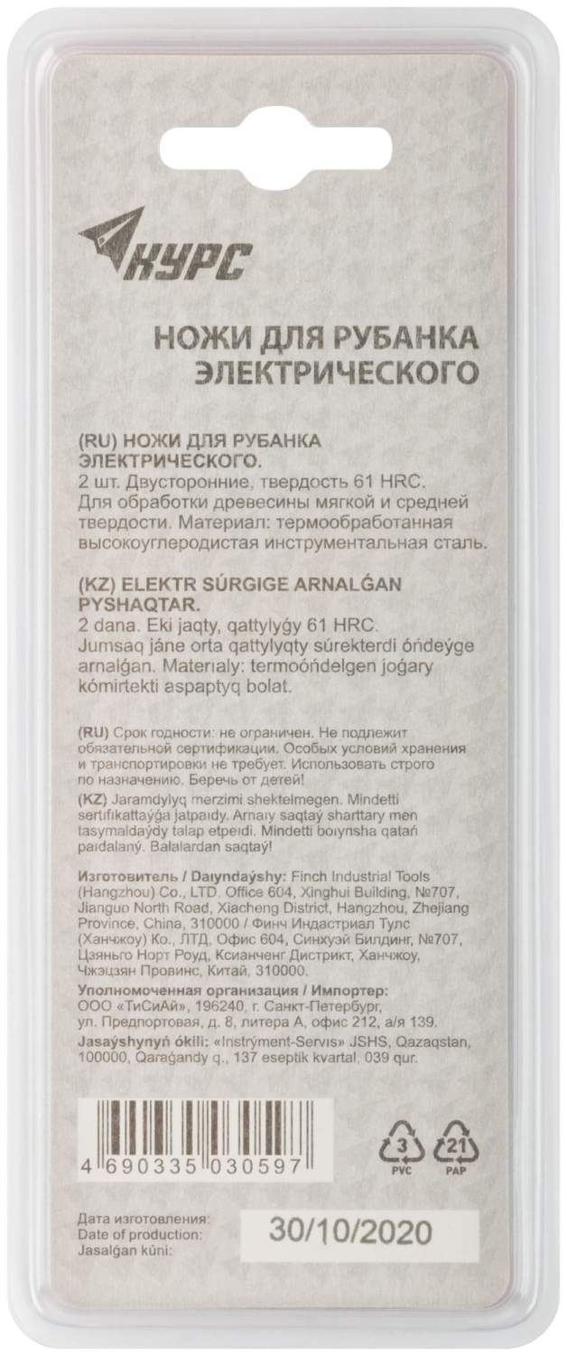 2 шт. Двусторонние. Для обработки древесины мягкой и средней твердости. Материал: высокоуглеродистая сталь.