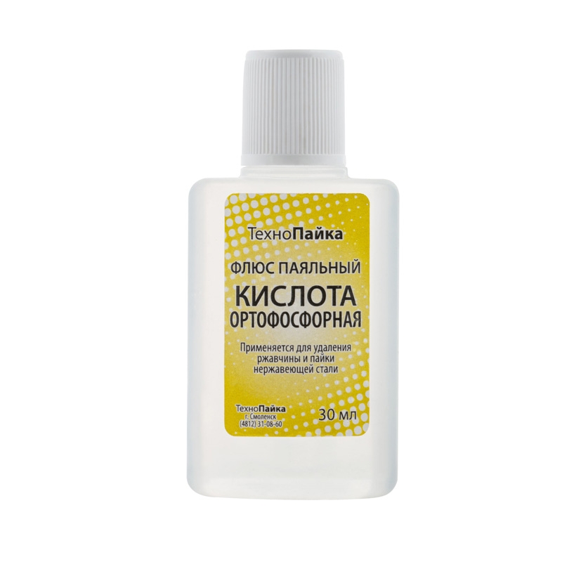 Ортофосфорная кислота для очистки поверхностей перед монтажом и удаления ржавчины, 30 мл. применяется для очистки поверхностей от оксидных и других соединений перед монтажом электронных компонентов , а также для удаления ржавчины. Удобный флакон с капельницей.