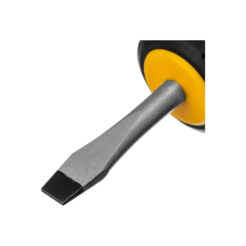 Отвёртка Denzel 122017 — инструмент для монтажа и демонтажа винтов и саморезов с прямым шлицем SL6. Она оснащена трёхкомпонентной рукояткой и стержнем из стали S2 длиной 38 мм. Благодаря своей конструкции отвёртка удобна для работы в ограниченном пространстве. Намагниченный шлиц высокой точности надёжно фиксирует головку крепежа. Инструмент рассчитан на интенсивное использование и подходит для профессиональных ремонтных и монтажных работ. Шлиц обработан фосфатированием, а на стержень нанесено никелевое покрытие, защищающее от повреждений и коррозии. Трёхкомпонентная рукоятка устойчива к воздействию масла и бензина. Цветовая маркировка на затыльнике позволяет быстро определить типоразмер отвёртки. Эргономичная рукоятка с резиновыми вставками и подпальцевыми выемками обеспечивает надёжный захват и предотвращает скольжение инструмента в руке.Благодаря отверстию в рукоятке отвёртку можно подвешивать на крючок или скобу.