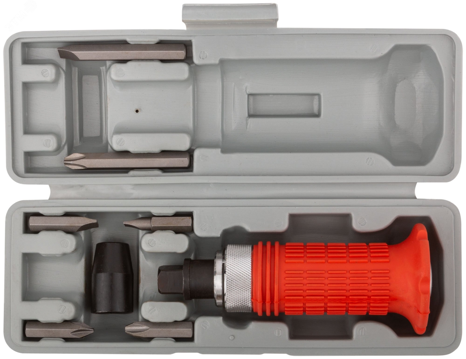 Отвертка ударная, 6 CrV спец. бит, прорезин.ручка, пласт. кейс