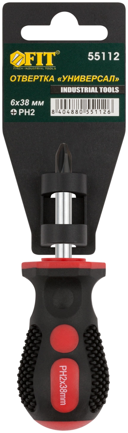 Отвертка Универсал, CrV сталь, прорезиненная ручка, Профи 6х38 мм РН2