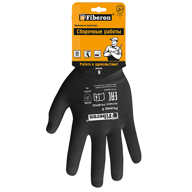 Перчатки Сборочные работы Декор PR-BP022 полиэстер, черные, размер 9(L), Fiberon