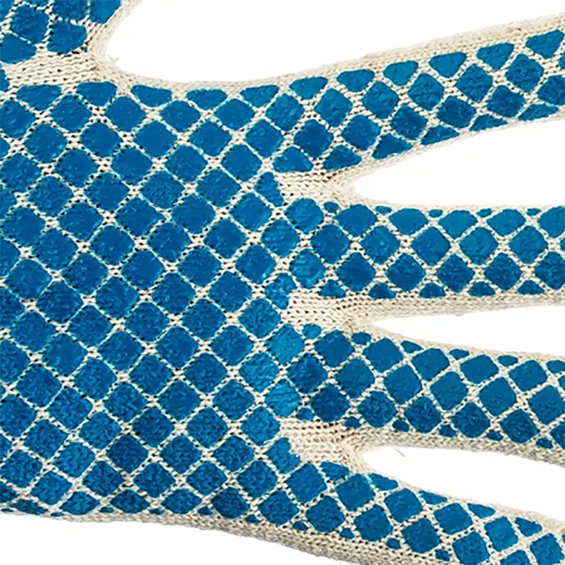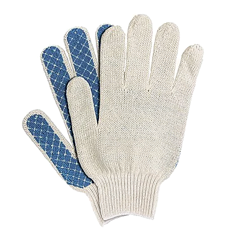 Перчатки трикотажные ПВХ покрытие Шахматный облив, 10 класс вязки, Россия защищают руки от царапин, порезов, ссадин, мозолей и загрязнений. Тонкая пряжа обеспечивает пальцам чувствительность, поэтому перчатки подходят для выполнения точных работ. Благодаря ПВХ-покрытию ладонной части инструменты не выскальзывают из рук. Перчатки используют в строительстве, на производстве, во время ремонта помещений и обслуживания автомобилей. Пригодятся они и в хозяйстве. Преимущества Основа выполнена из воздухопроницаемой хлопчатобумажной пряжи, поэтому руки в перчатках не потеют. В пряже содержится полиэфирная нить, что повышает прочность и эластичность перчаток. Покрытие из ПВХ препятствует истиранию, продлевая срок службы изделий. Манжеты плотно облегают запястья, обеспечивая удобную посадку перчаток на кистях рук. Материал перчаток не вызывает аллергии, поэтому их использование безвредно для здоровья. Перчатки не ограничивают движения пальцев, обеспечивая комфорт во время работы.