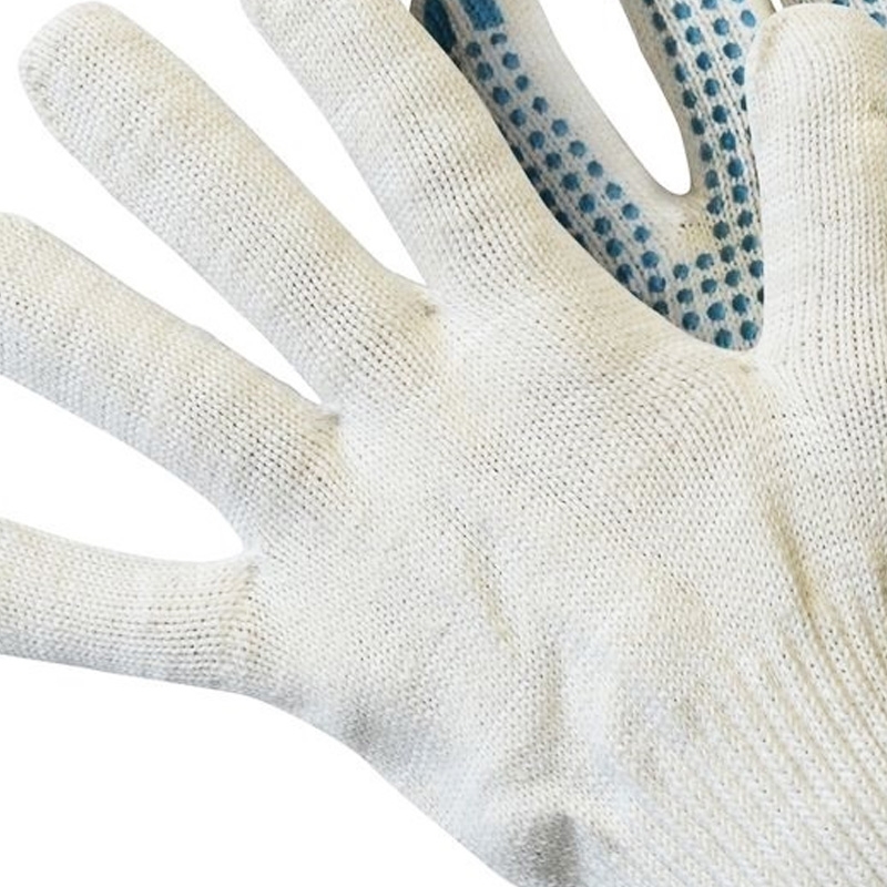 Перчатки трикотажные с ПВХ точкой, белые, 10 класс вязки, 32 гр., Komfi