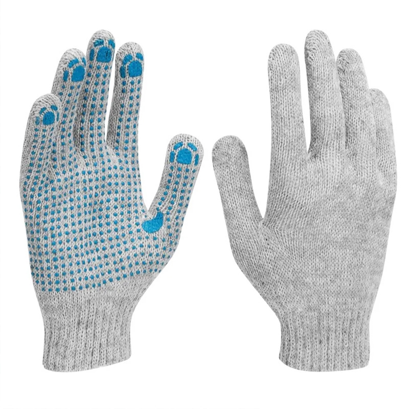 Перчатки трикотажные с ПВХ точкой, серые, 7 класс, Россия