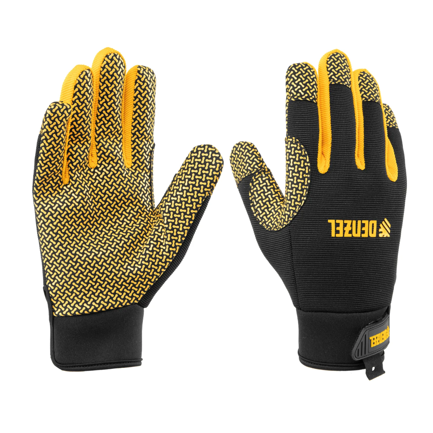 Универсальные перчатки Denzel 68000 размера 10, с силиконовым нанесением, предназначены для защиты кожи рук от механических повреждений. Используются во время слесарных и столярных работ. Прочность — перчатки изготовлены из полиэстера, неопрена, полиамида и других материалов, устойчивых к разрыву истиранию.