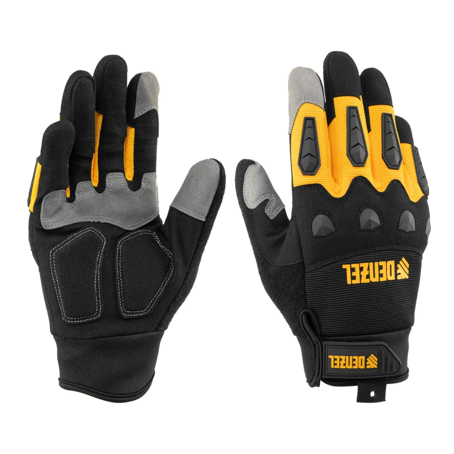 Универсальные усиленные перчатки Denzel 68002 размера 9, с защитными накладками, предотвращают появление царапин и мозолей во время работы с ручным инструментом. Анатомически скроенные, они плотно облегают кисти рук, не сковывая движения пальцев. Перчатки используются при выполнении строительных, ремонтных, слесарных и столярных работ. Прочность — перчатки изготовлены из полиэстера, неопрена, полиамида и других материалов, устойчивых к разрыву истиранию.
