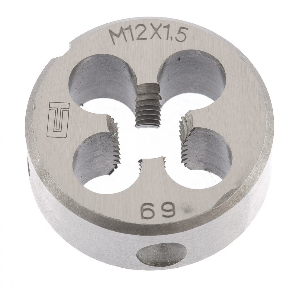 Плашка Сибртех 77031, М12 х 1,5 мм, поможет нарезать внешнюю метрическую резьбу. Она проста в использовании, поэтому пригодится в быту при проведении слесарных и монтажных работ даже начинающим мастерам. Цельная конструкция плашки позволяет полностью захватывать деталь и нарезать ее за один проход, благодаря чему получается высокоточная и качественная резьба.