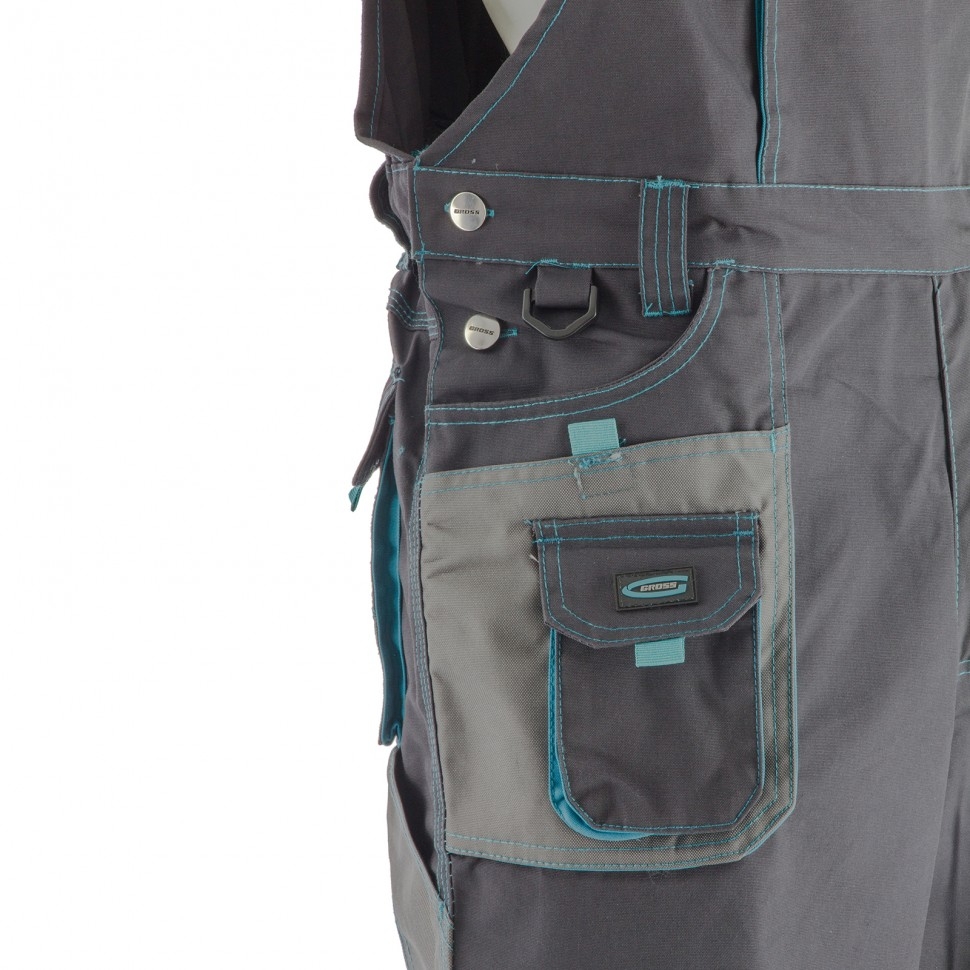 Полукомбинезон Gross 90354 размера XL рассчитан на рост 185-188 см и предназначен для защиты рабочего от механических повреждений, ветра и пыли. Может применяться в отапливаемых помещениях или на улице в теплое время года. Изготовлен из смесовой ткани с 35%-м содержанием хлопка, которая не препятствует воздухообмену, поэтому в полукомбинезоне комфортно работать. На 65% ткань состоит из полиэстера, что обеспечивает износостойкость спецодежды. В 14 карманах можно разместить инструменты и необходимые мелочи. Полукомбинезон необходим строителям, электрикам, садовникам, сотрудникам автосервисов, а также рабочим других специальностей. Эластичный пояс комфортно прилегает к телу, не сковывая движений. Имеются карманы на липучках, поэтому мобильный телефон и другие мелкие предметы не потеряются. Специальные нашивки с водоотталкивающей пропиткой защищают боковые карманы от истирания, продлевая срок службы полукомбинезона. На коленной части предусмотрены карманы для амортизационных вкладышей.