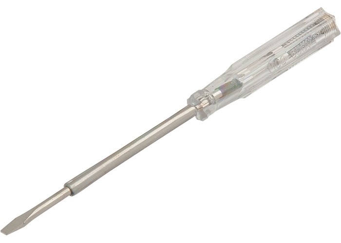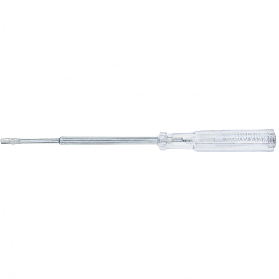Отвертка-индикатор с профилем «прямой шлиц» предназначена для определения напряжения в бытовых электрических сетях.Ручка изготовлена из прозрачной ацетилцеллюлозы.Стержень покрыт изоляцией по всей длине.