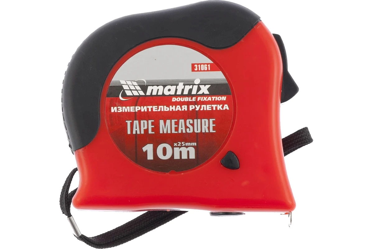 Рулетка Double fixation 10м х 25мм. обрезинен.корп., двойная плавная фикс Matrix