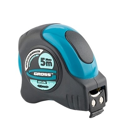 Рулетка Schlagfest,магнит.обрезин.зацеп, двухст.шкала, нейлон.покр., автоматич. 5м х25 мм Gross