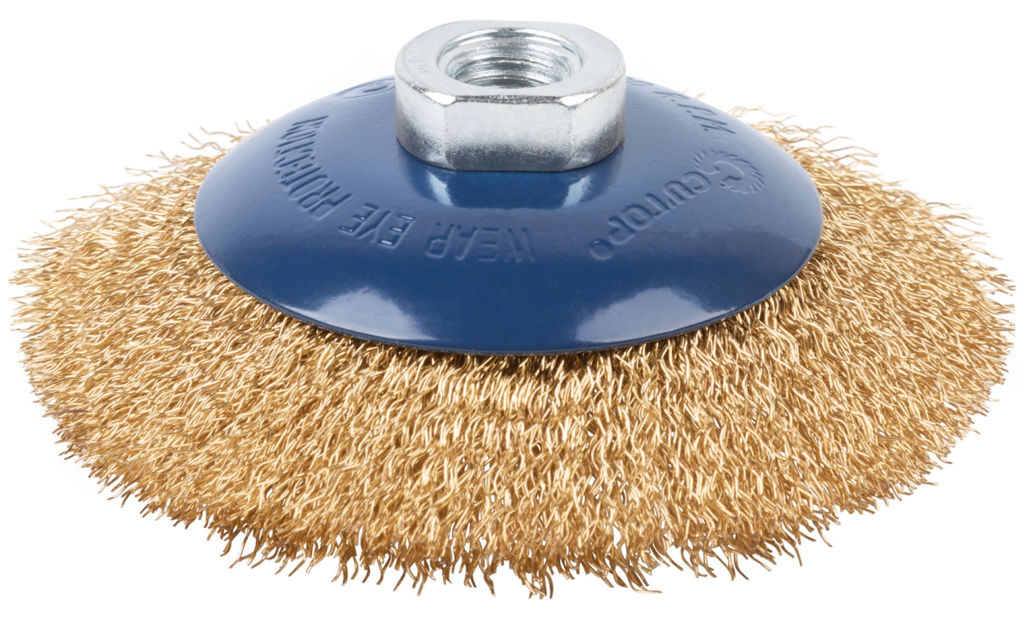Щетка для УШМ "тарелка", латунир.витая проволока 0,3мм, М14 CUTOP Profi