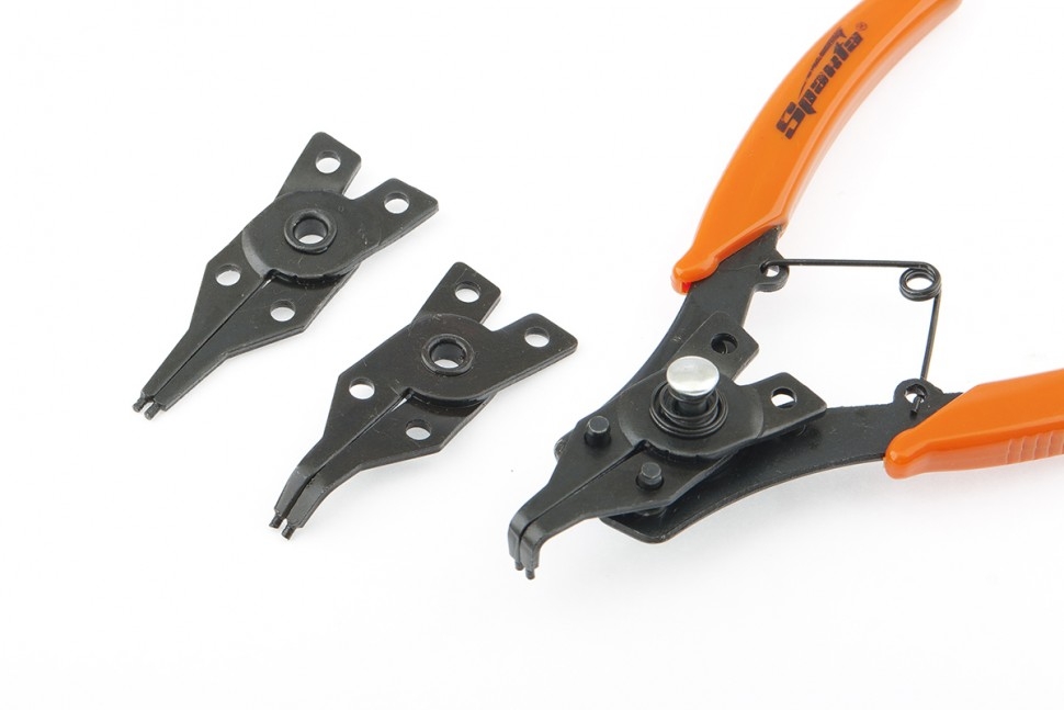 Универсальный инструмент заменяет несколько типов съемников для внутренних и внешних стопорных колец.В комплект входят сменные насадки с прямыми и отогнутыми под углом 45 и 90 градусов наконечниками.Возвратная пружина позволяет приводить инструмент в исходное положение без усилий.