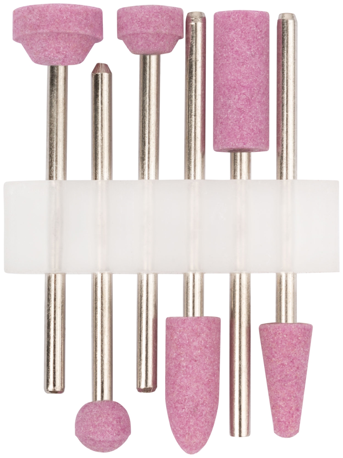 Для гравировальной машины. В наборе 6 шт. Предназначены для шлифовки изделий из стали и цветных металлов. Зернистость: P120. D хвостовика=3,1 мм. Материал: хвостовик из инструментальной стали, корунд. Упаковка: блистер.