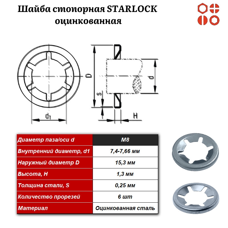 | Шайба стопорная STARLOCK М6 оцинкованная, 5000 шт. | шстопслМ6оц | 1 шт. |
