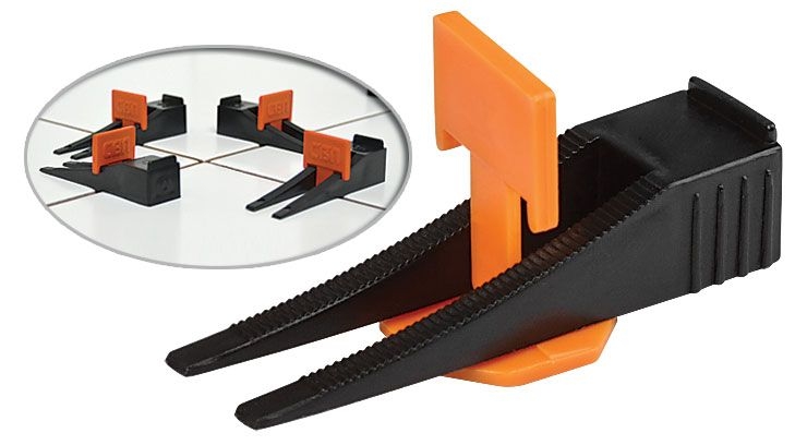 Система выравнивания кафельной плитки. Используется при выравнивании кафельной плитки, упрощает процесс выравнивания соседних плиток в одной плоскости относительно друг друга. Малая толщина зажимов позволяет получать швы шириной 1,5 мм. Точная установка плитки достигается за счет малого шага зубьев на клиньях. Клинья рассчитаны на многократное использование. Ребристая поверхность рабочей части клиньев обеспечивает прочную фиксацию при установке. Совместимы со щипцами FIT арт. 16815. Зажимы легко демонтируются с помощью киянки.