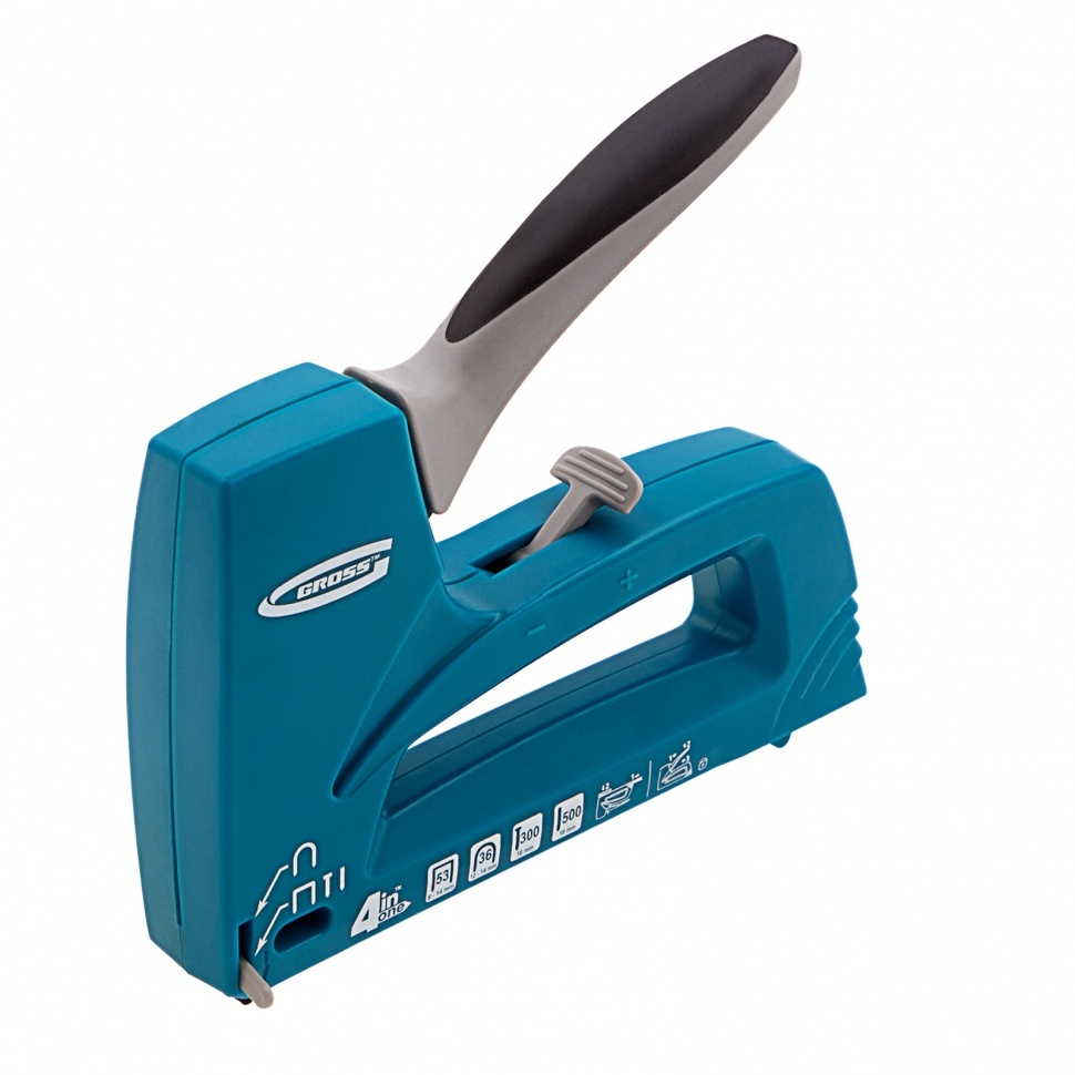Степлер мебельный универс.,пластик.корп.,тип скобы 36,53,300,500. 8-14 мм 4-функц Gross
