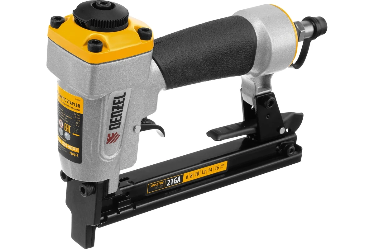 Степлер пневматический PS8016 для прямоуг.скоб 21GA 6-16 мм Denzel
