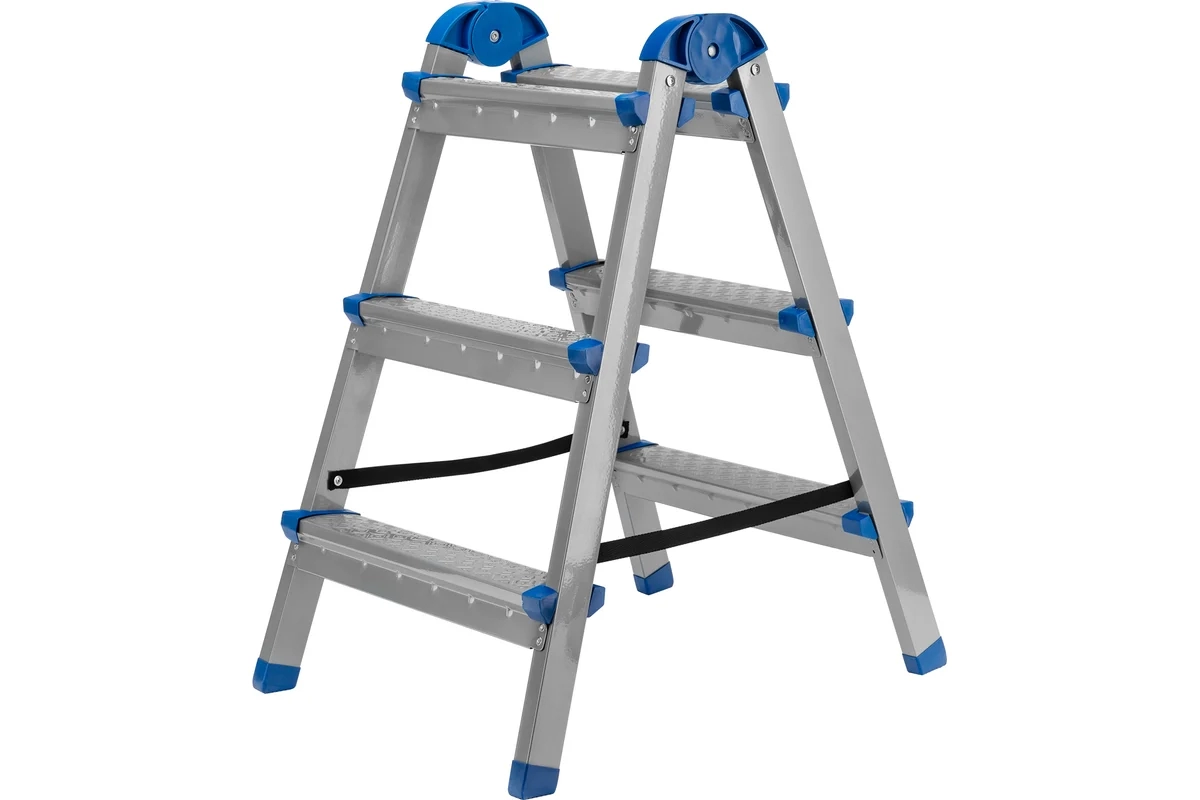 Стремянка 3 ступени двухсторонняя, стальная, стальные ступени Сибртех