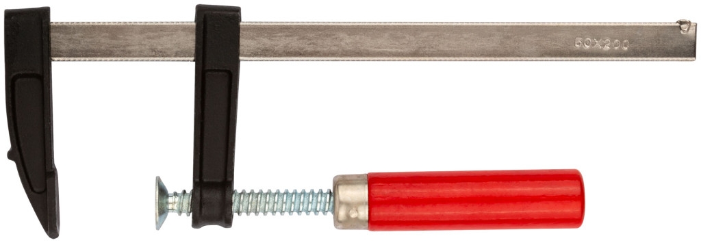 Струбцина – это конструкция, которая служит для того чтобы закрепить детали к нужной поверхности или плотно прижать их между собой. Струбцины F-образные конструкционно состоят из двух губок, одна из которых неподвижно закреплена на плоском основании, а другая имеет регулировку перемещения. Благодаря глубокому зеву такой инструмент обеспечивает возможность фиксации изделия на большом удалении от его края. Перемещающая головка зажимной губки может комплектоваться рычагом-эксцентриком или регулировочным рычагом. Струбцина столярная – вспомогательный инструмент, который применяется в столярных работах и многих других для закрепления деталей путем прижатия между собой или к требуемой поверхности. Изготовлена из инструментальной стали, что увеличивает рабочий ресурс. Модель оснащена деревянной ручкой. Размеры 50х200 мм.