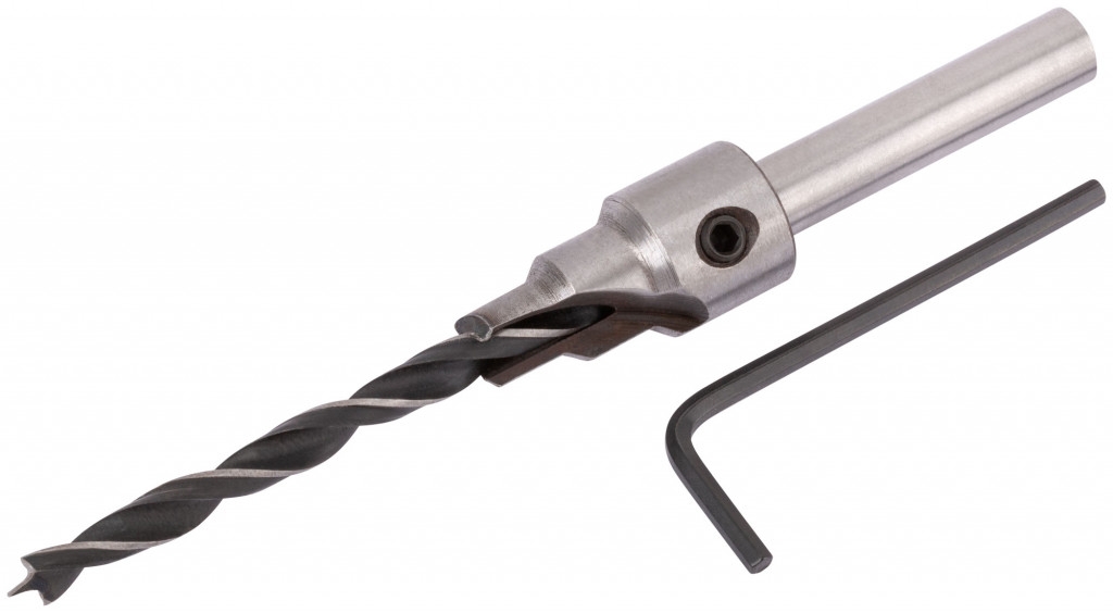 Для сверления отверстий в древесине под ме-бельную стяжку «конфирмат». В комплекте: сверло, держатель сверла с зенкером, ключ шестигранный. Материал: инструментальная сталь. Упаковка: блистер.