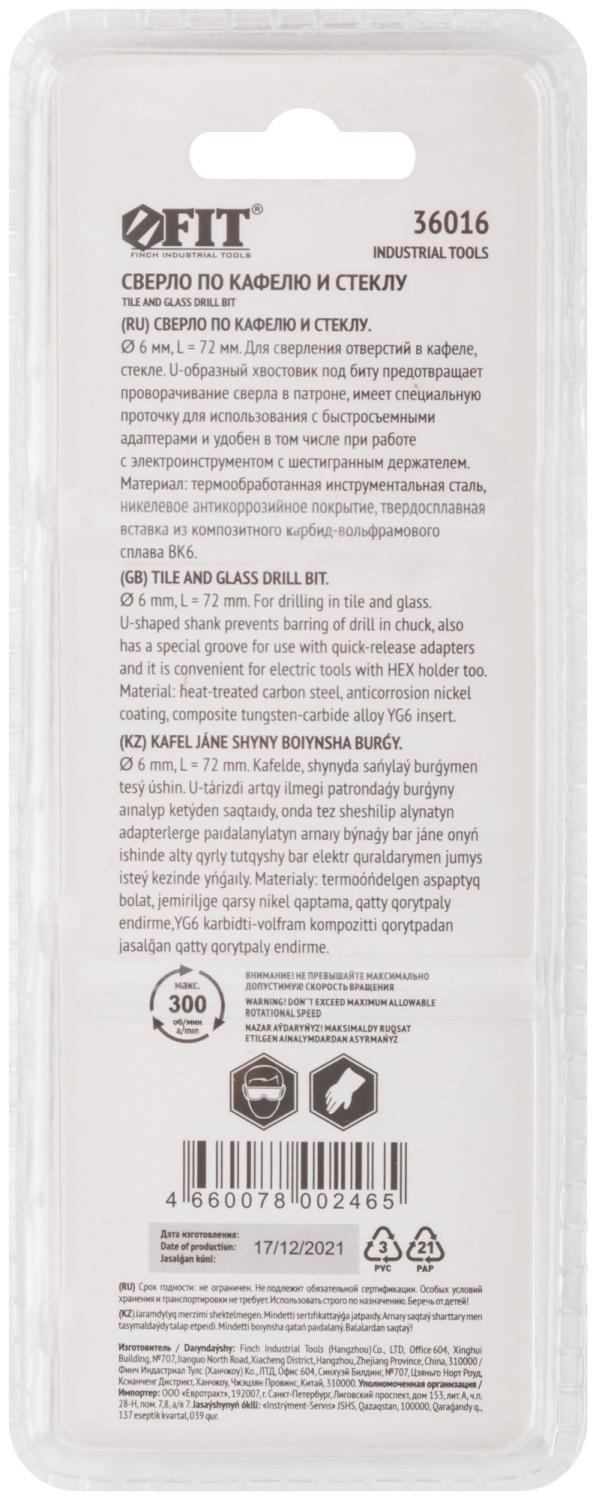 Сверло по кафелю шестигранный U-хвостовик под биту, 6 мм