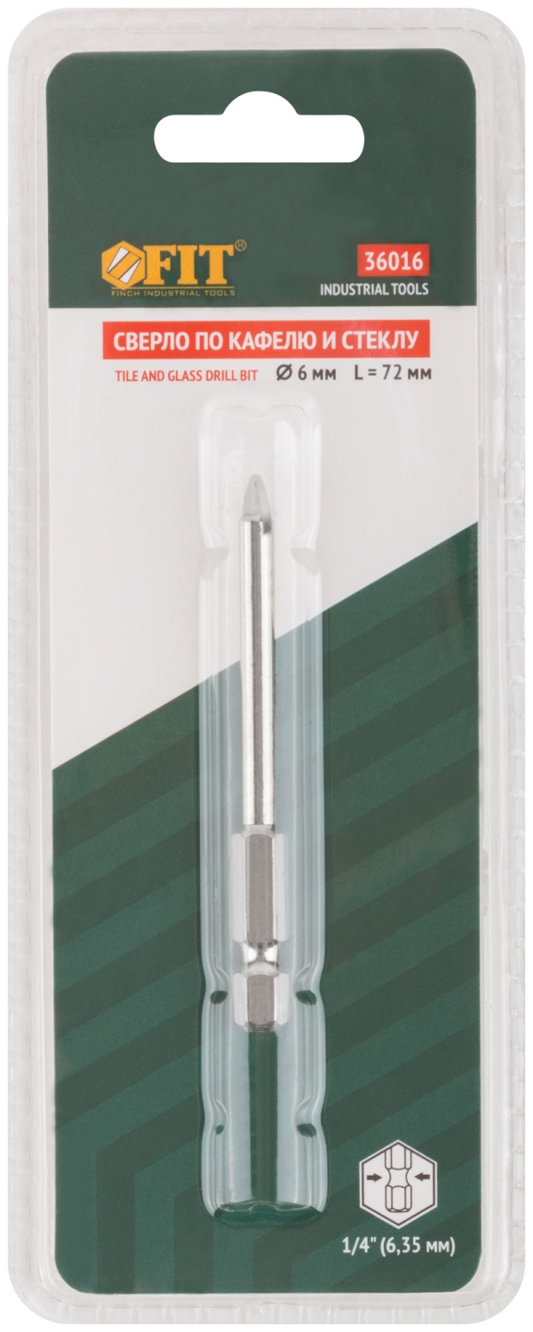 Шестигранный хвостовик. Материал: хромированная стальная основа с твердосплавной карбидной вставкой. Упаковка: блистер.