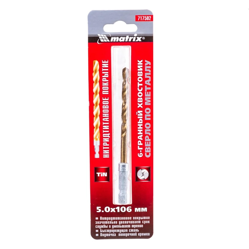 Сверло по металлу HSS нитридтитановое покрытие, 6-гранный хвостовик 5,0 мм Matrix