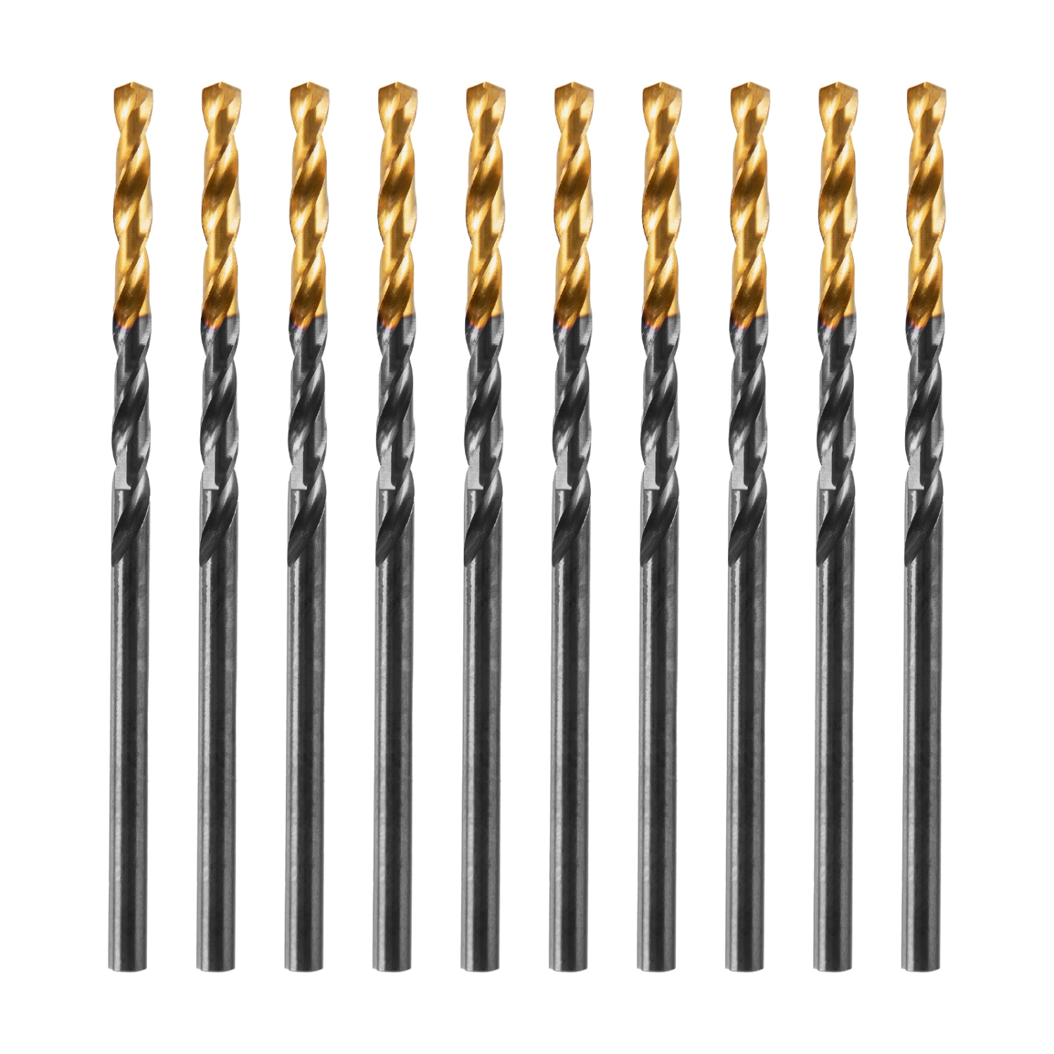 Сверло по металлу Denzel Golden Tip из стали HSS-TiN, 10 шт. в упаковке, используется для получения отверстий в стальных заготовках. Оснастка вышлифована на современном оборудовании и имеет класс точности A1, что позволяет получить отверстия высокого качества. Набор применяется во время слесарных работ. Прочность — сверла из быстрорежущей стали устойчивы к перегреву и выдерживают высокие нагрузки.