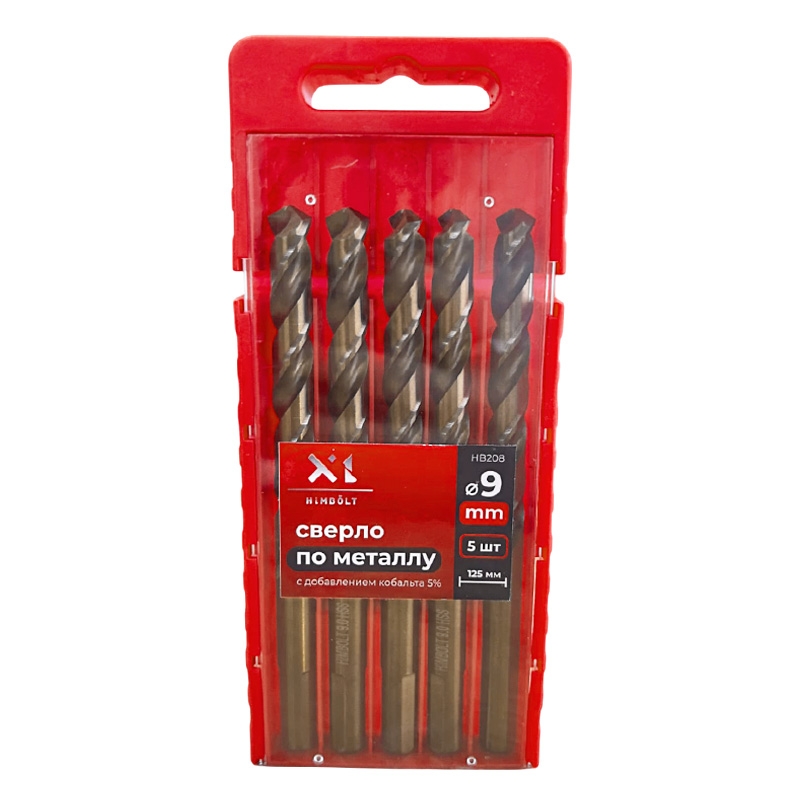 Сверло по металлу с кобальтом 5% P6M5K5 9,0 мм HIMBOLT 5 шт.пластиковый бокс