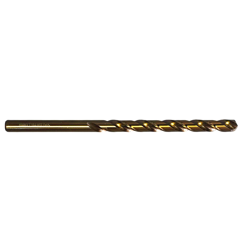 Cверло Himbolt HSSE М35 Сo5%, выполнено из высококачественной быстрорежущей инструментальной стали. Отличается повышенной красностойкостью и износостойкостью. Кобальт в составе сверла позволяет работать с любыми металлами и сплавами твердостью до 1100 МРа, а также с нержавеющей сталью, но при соблюдении рекомендованной скорости сверления и при использовании СОЖ. Угол заточки 135°.