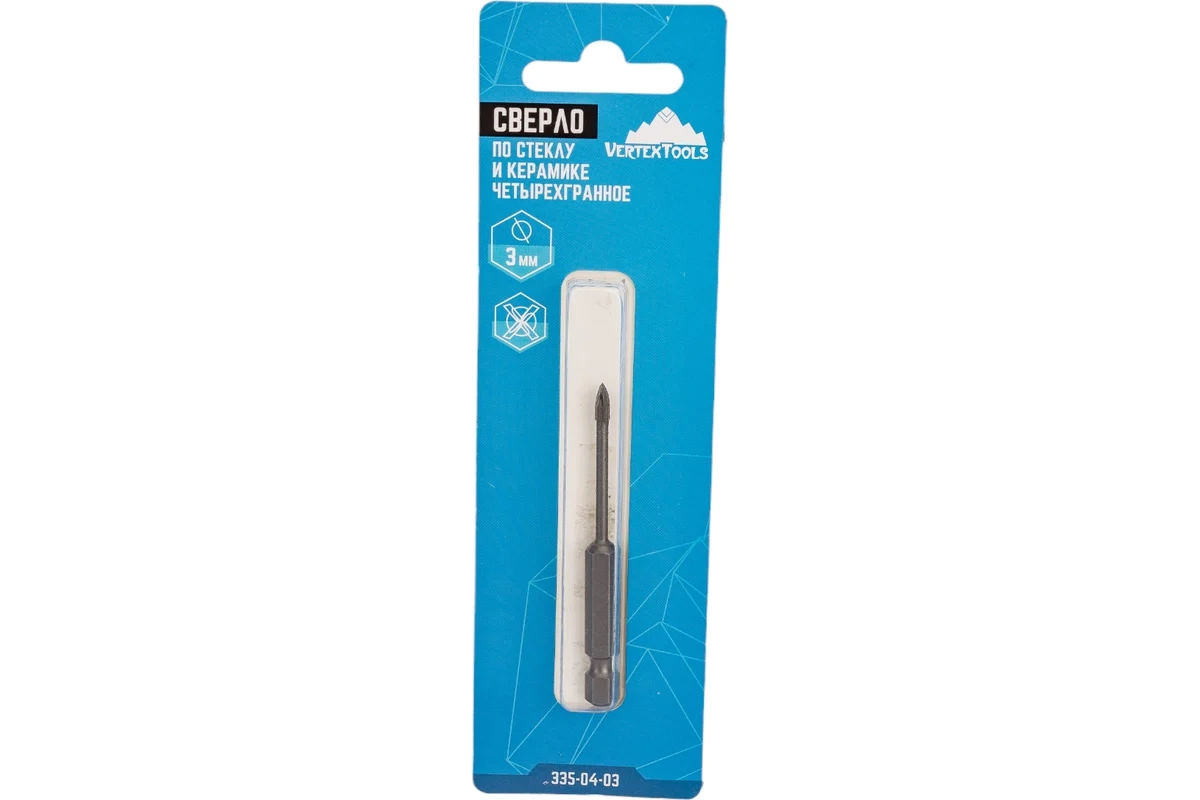 Сверло по плитке керамической и стеклу 3мм, четырехгр.хвостовик VERTEXTOOLS