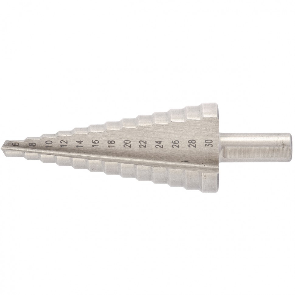 Сверло ступенчатое 6-8-10-12-14-16-18-20-22-24-26-28-30 мм,по мет..Р6М5,трехгр.хв.Барс